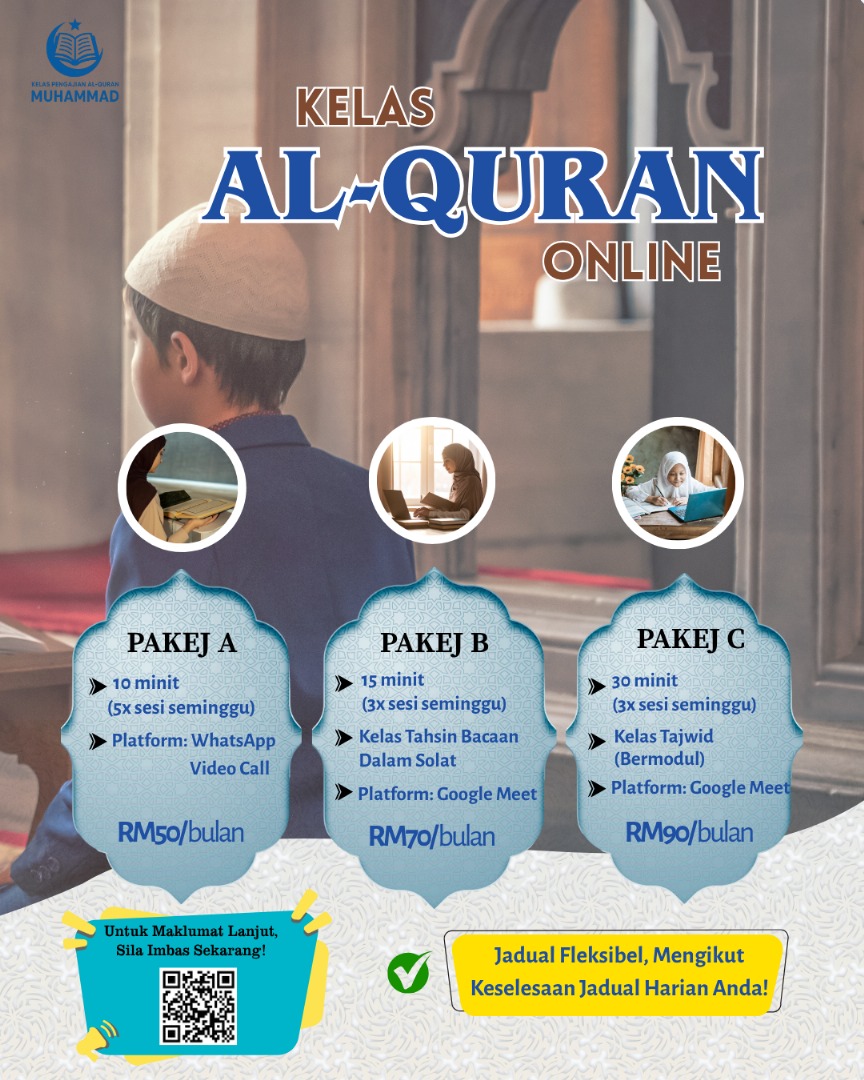 Tak sempat ke kelas mengaji? Jangan risau, sekarang boleh belajar Al-Quran dari rumah, fleksibel & ikut masa sendiri!